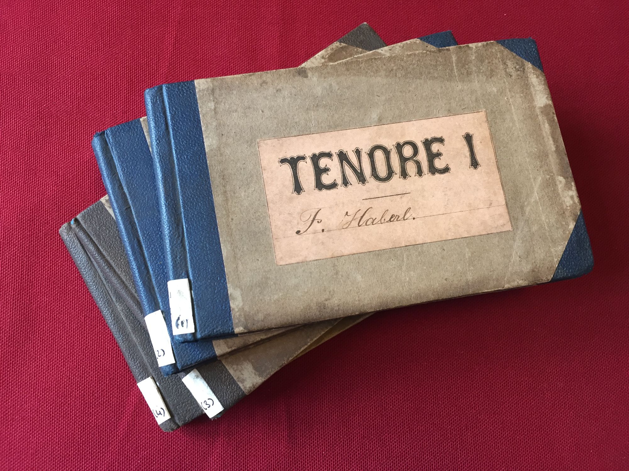 These four separate part books for tenor I, tenor II, bass I and bass II, include two volumes of music collected and arranged by F.X. Haberl (1840-1910).