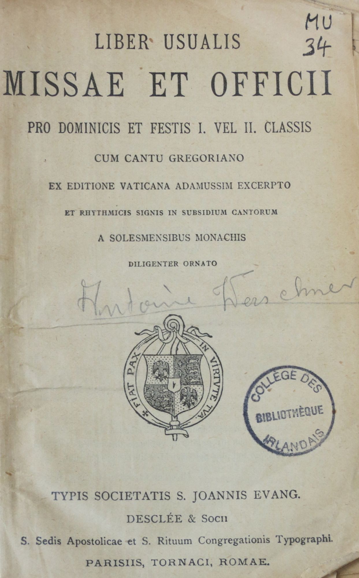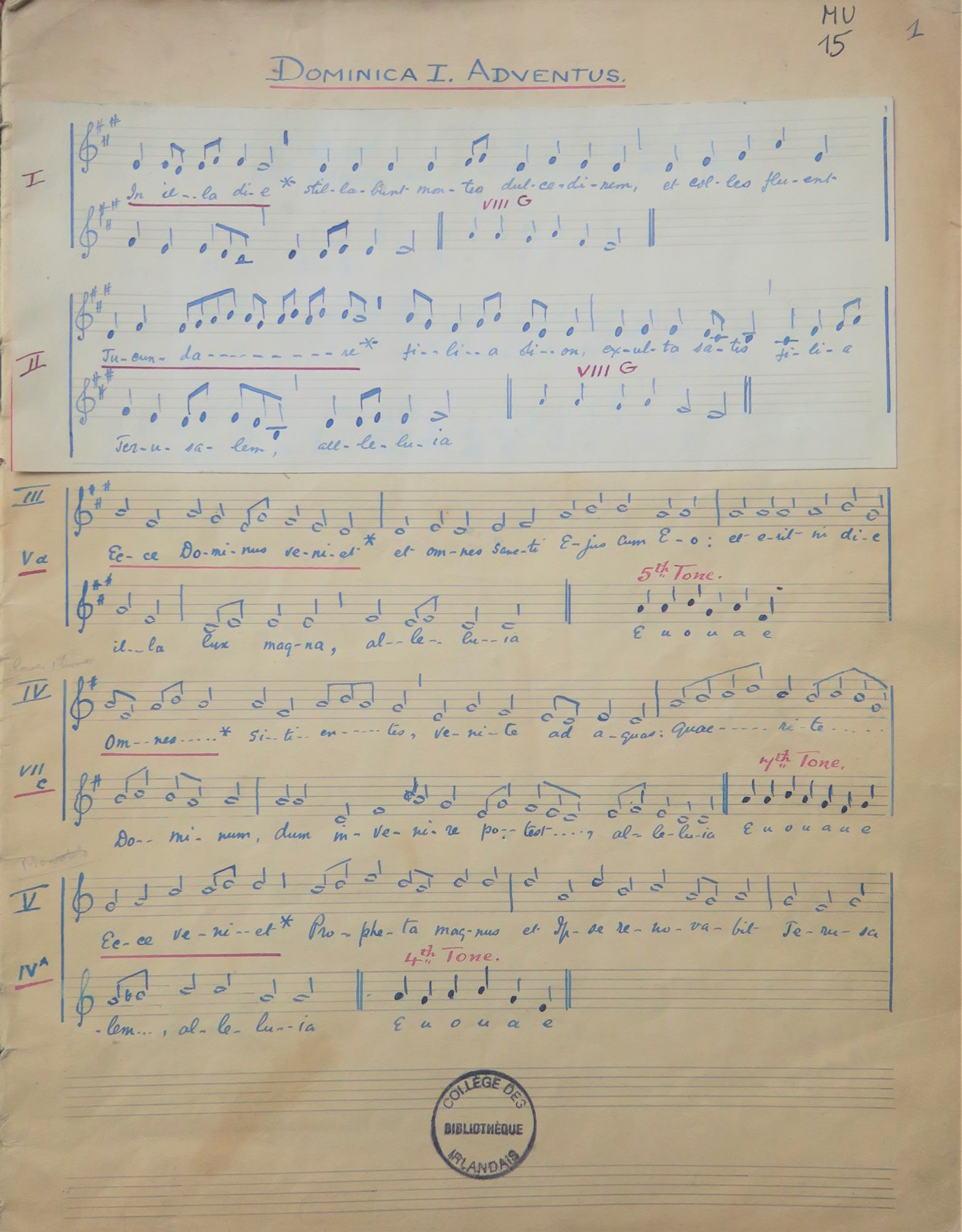 The history of plainchant since the seventeenth century is a fascinating one and it is documented in the rich and wide-ranging selection of sacred music in the collection of the Old Library and Historical Archives of the CCI. For this exhibition, we have chosen some music and books that illustrate the story of its decline and revival in the Catholic Church in France, Ireland, and further afield from the eighteenth to the early twentieth centuries.