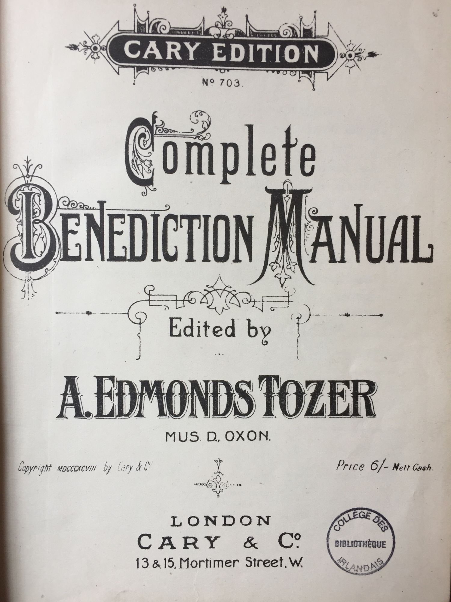 Tozer was a convert to Catholicism, a composer of six masses, and prolific editor of Catholic hymnals. This manual includes benediction music composed by the English Benedictine monk Joseph Egbert Turner and a setting of Edward Elgar’s ‘O Salutaris Hostia’ for four-part choir and organ.