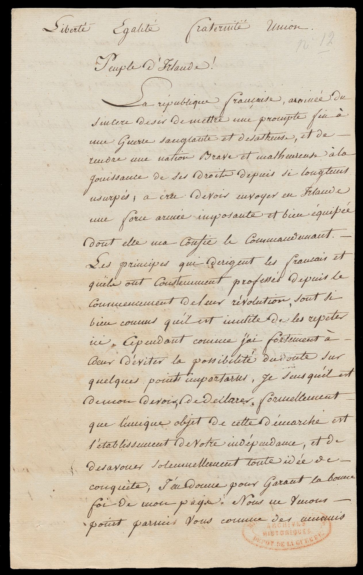 Tone’s Proclamation to the People of Ireland, 9-10 June 1796: Archives Nationales de France/AF IV/1671.