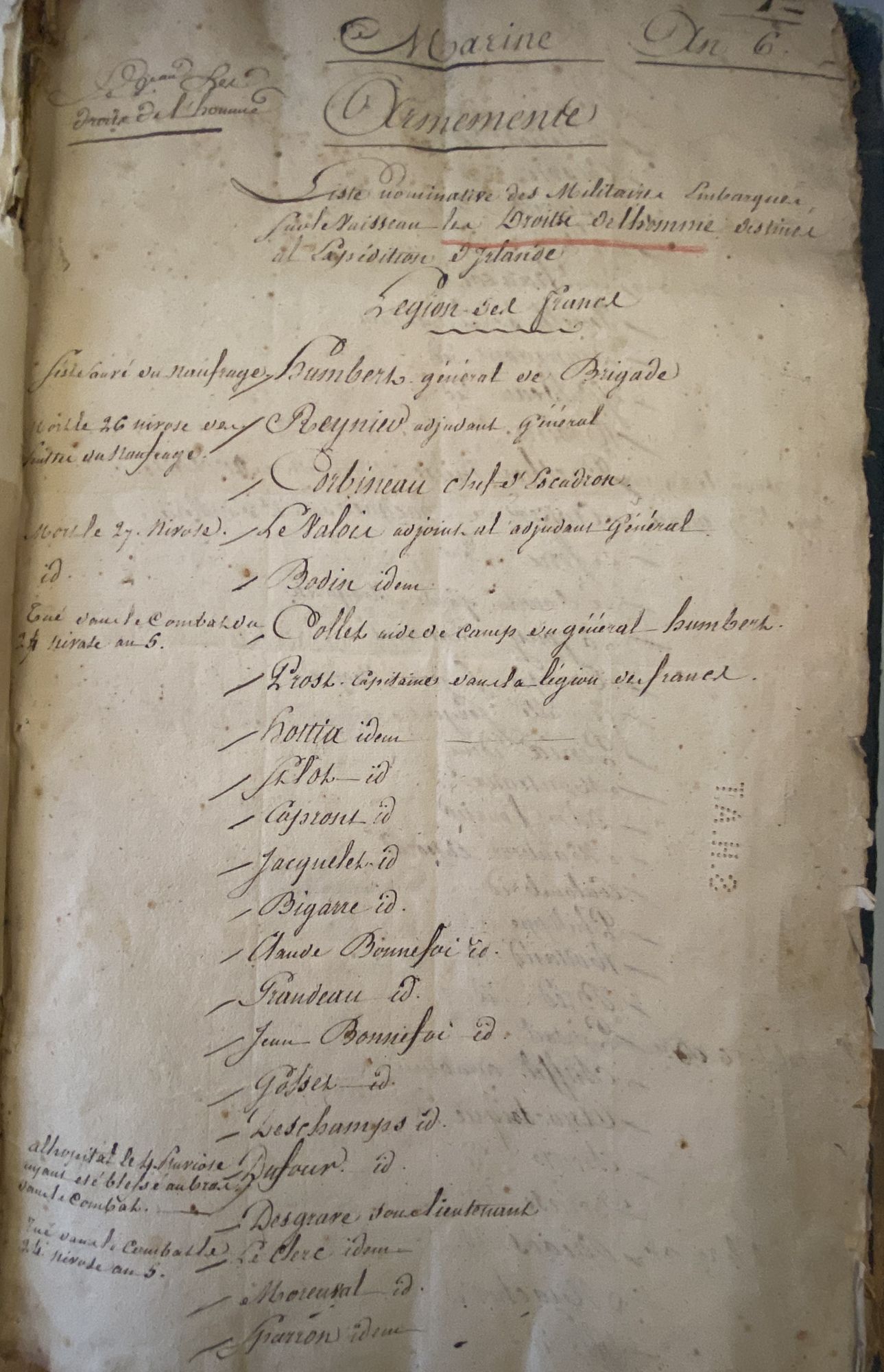 It ends with admonishing the troops from the 94 demi-brigade on board La Constitution and the 24th demi-brigade aboard la Coquille to be returned to their depots for behaviour unworthy of the Republic and the people. Both ships had just returned from Ireland. In October 1798 La Coquille was involved in the Battle of Tory Island and was captured by the British navy.