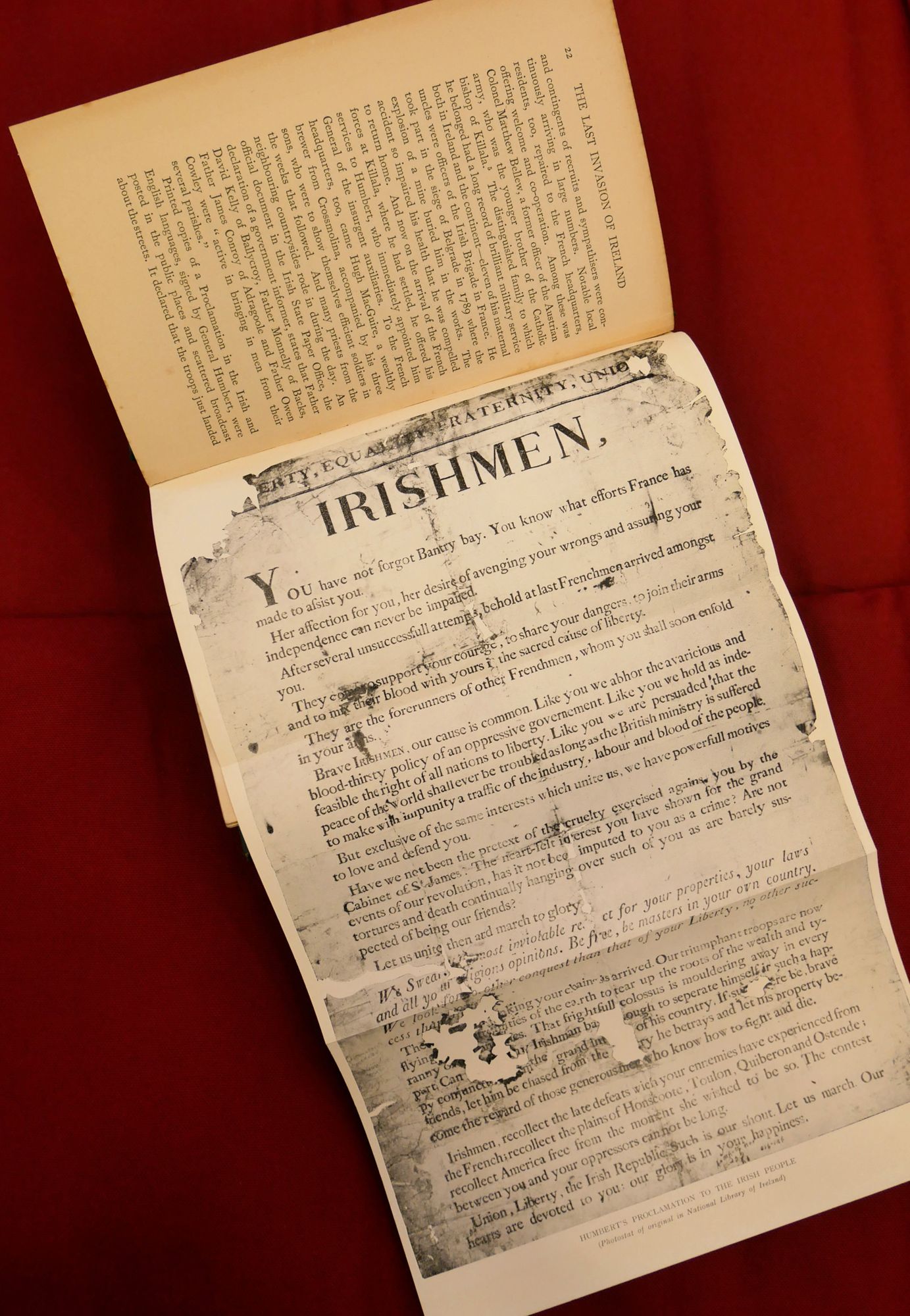By Richard Hayes, M.H. Gill and Sons, 1939 open on illustration of General Humbert’s proclamation to The Irish People.