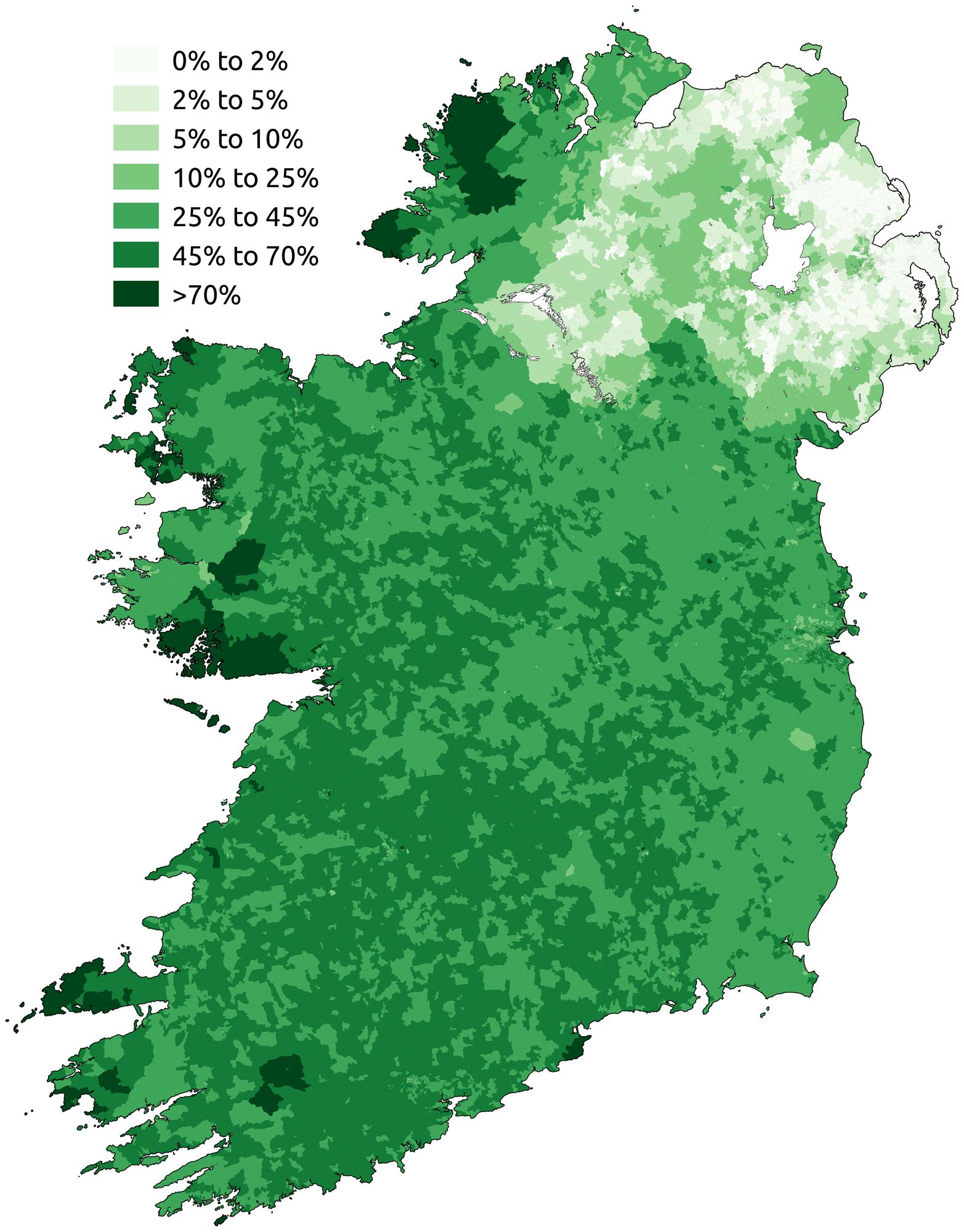 Gaeilge (known in English as “Irish”, or sometimes “Gaelic”) is a Celtic language that has been spoken in Ireland for over 2000 years, and was the predominant language on the island up to the 19th century. Today it is spoken as a first language by communities spread throughout Ireland (traditionally associated with “Gaeltacht” regions) and the diaspora. Some well-known examples of these regions where Irish is the primary language of the local population include Conamara, the Dingle Peninsula, the surroundings of Slieve League, and the Aran Islands, where it is used in daily life in commerce and socialising. The language is spoken in the villages and in the countryside, in shops and in restaurants, as the normal means of communication. The linguistic situation of these communities and their issues in supporting and transmitting the language is comparable to the case of other minority languages internationally, such as Breton, Occitan or Basque.