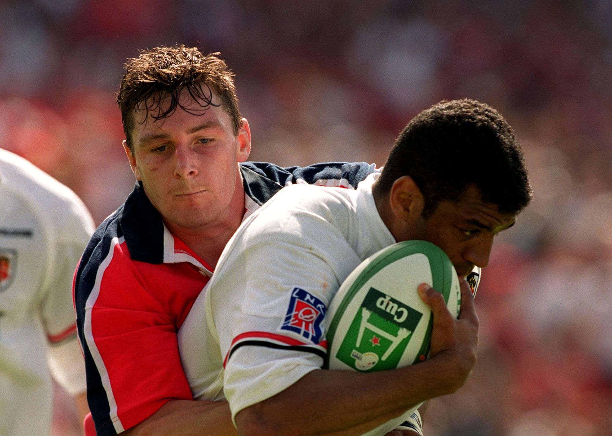 France’s Serge Blanco goes by Simon Geoghegan of Ireland to score a try in Lansdowne Road in 1981