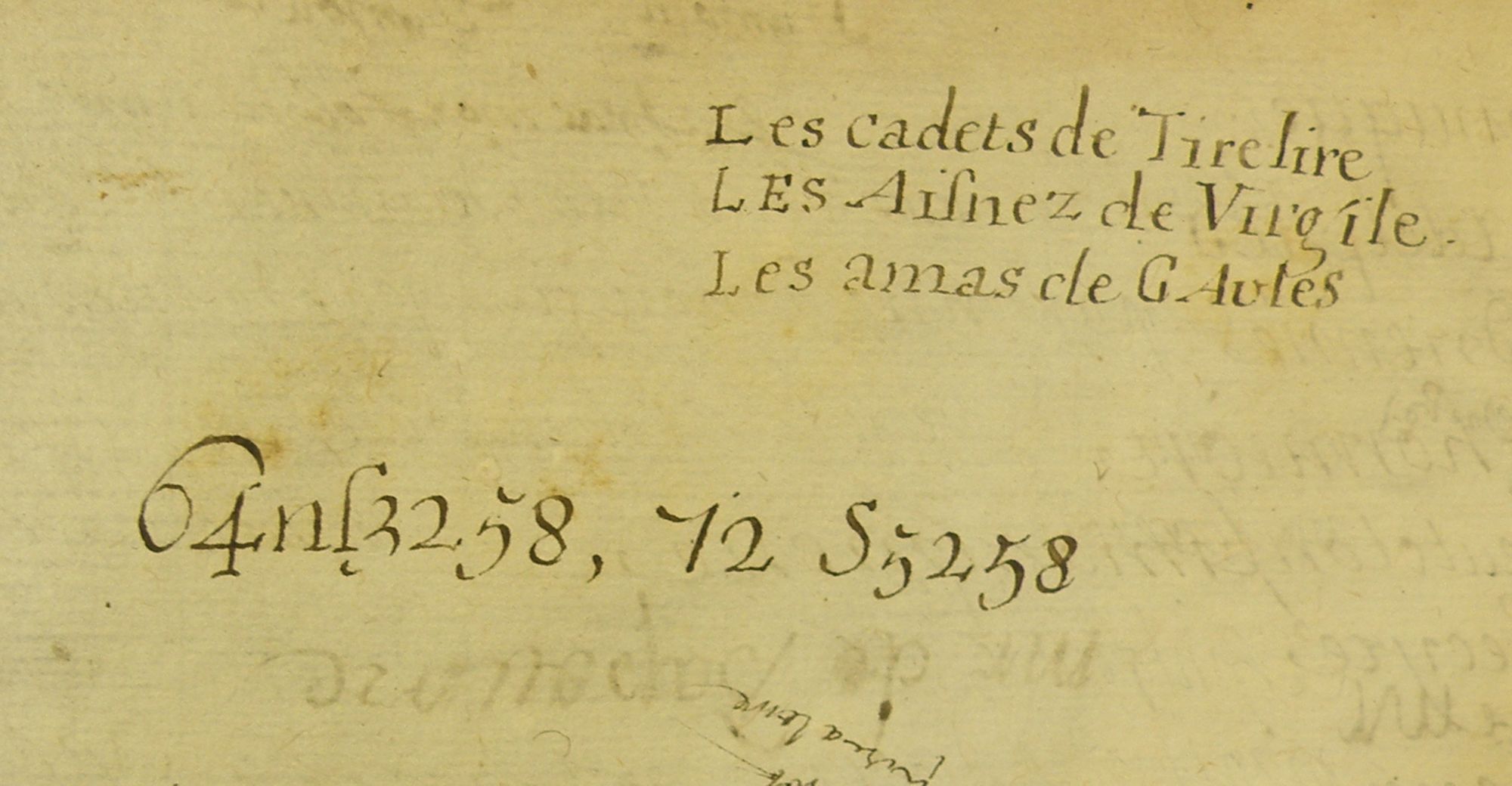 The pupils disguised famous titles. Hidden under "les cadets de Tirelire" lies the Decades by Livy. The same treatment has been given to The Aeneid by Virgil and Amadis de Gaula. The key to the secret code is on another page of the book. The code reads, under the numbers, "Monsieur Le Sueur".