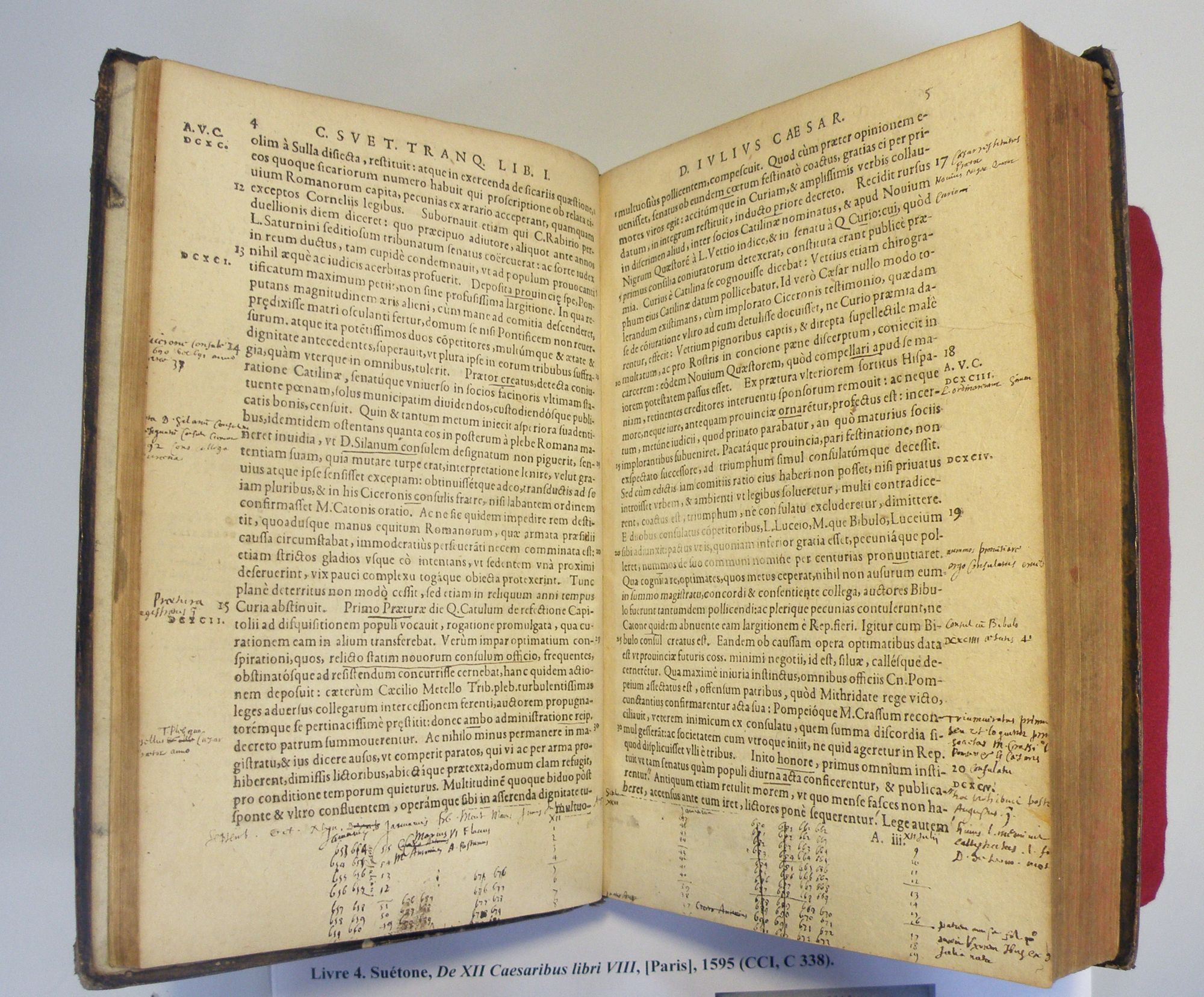 The reader used the margins to highlight the major parts of Caesar's ascension, to suggest other versions of the text and to clarify the timeline.