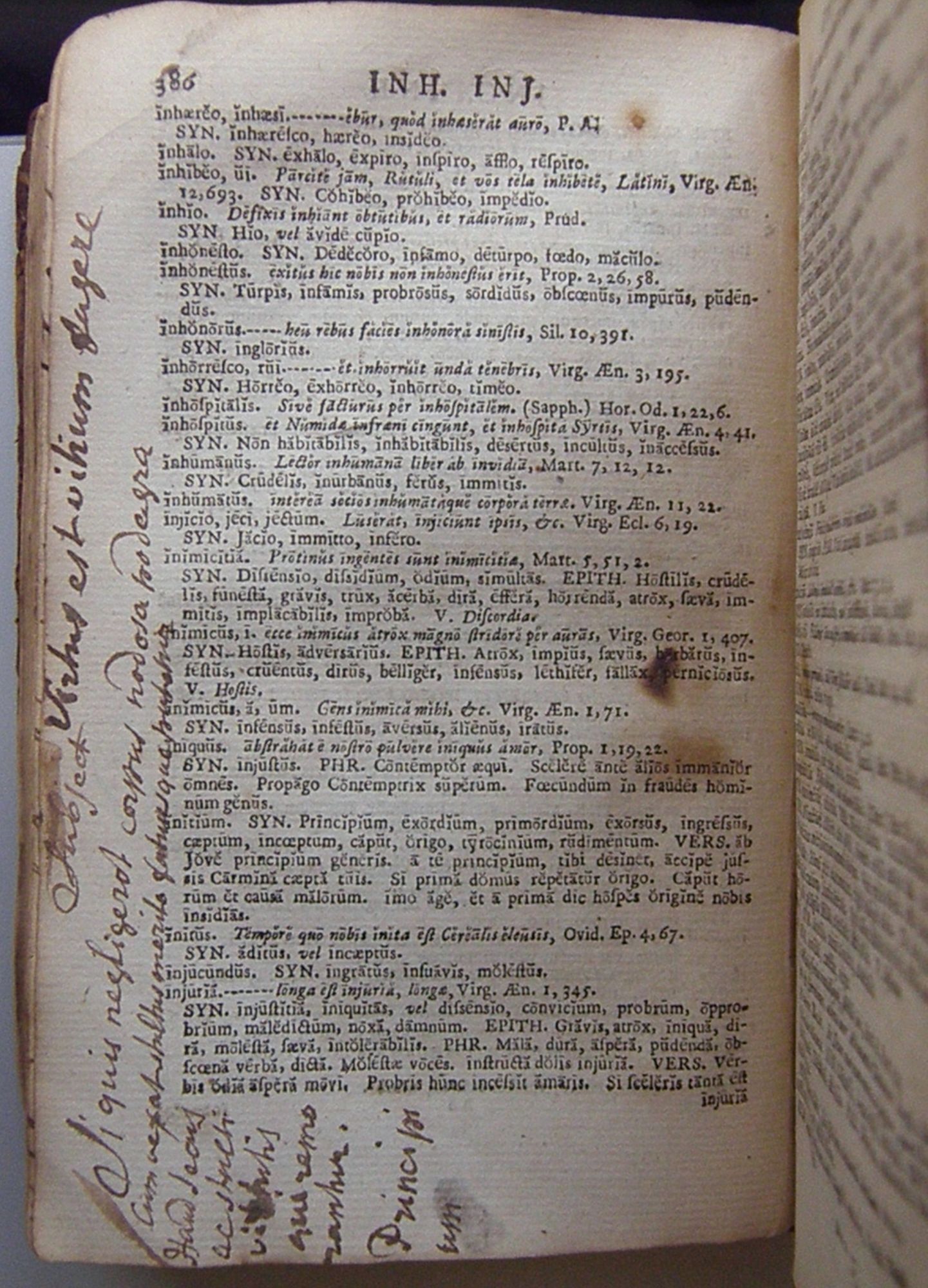 In the middle of the 18th century, sons and nephews of bishop and philosopher George Berkeley annotated the margins of Gradus ad Parnassum, a famous poetic dictionary. They added around a hundred expressions in Latin, either taken from classical authors or written by themselves to varying degrees of success. The book is not just a window into Ancien Régime educational methods. The young readers also turned it into a social space, letting their friends write in the margins.