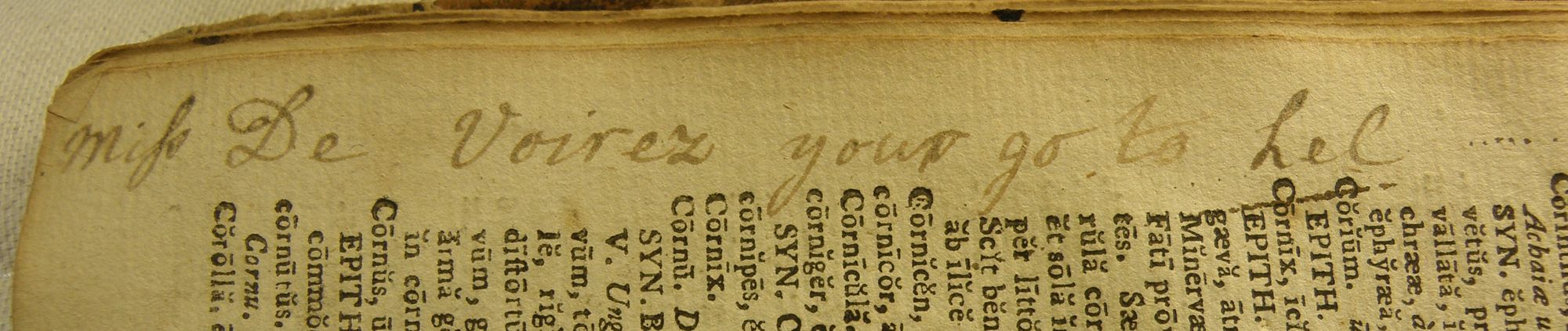 Many of the adolescents' friends wrote their signatures in the margins of the Gradus. The book contains evidence of friendship and rivalry, attraction and tension. Here is written, "To hell with you, Miss De Voirez"!