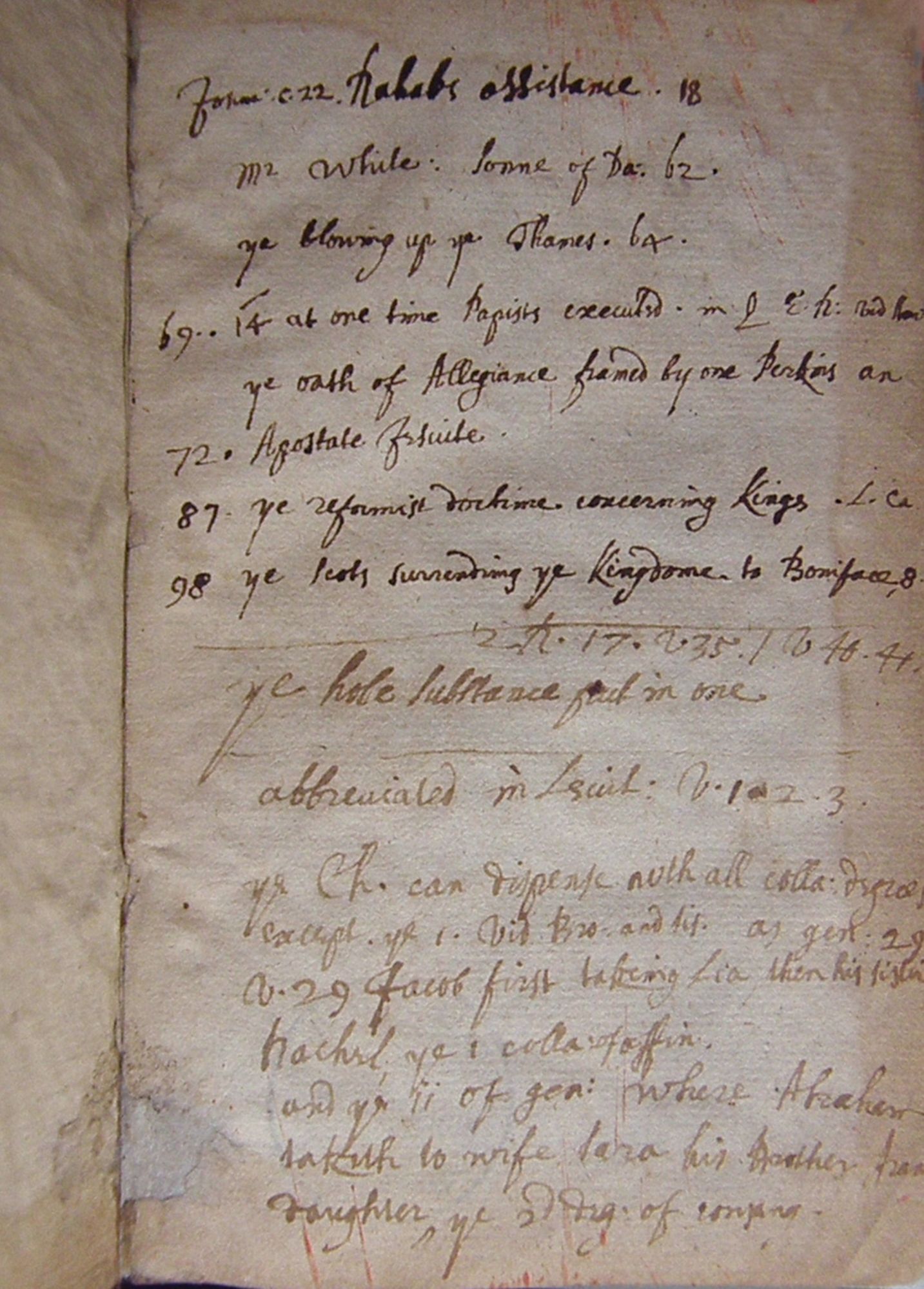 This work is part of a violent conflict between Protestants and Catholics waged via booklet. In this index, the reader highlights a number of arguments developed by the author in favour of Catholics.