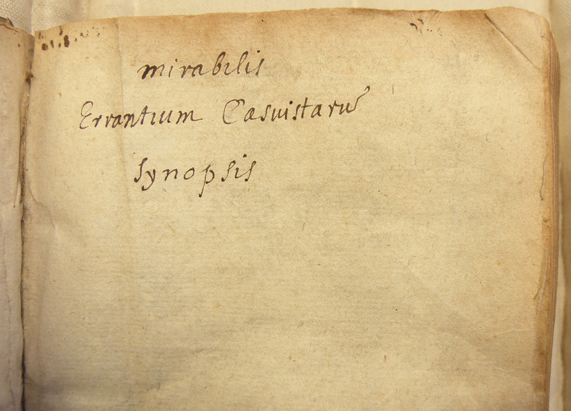 Readers used these typographical forms to condemn the loose morals of Jesuit confessors. This famous work on moral theology by the Jesuit Escobar y Mendoza (1656) features a false title that sums up a reader’s final conclusion: "mirabilis errantium casuistarum synopsis" (Admirable inventory of misguided casuists).