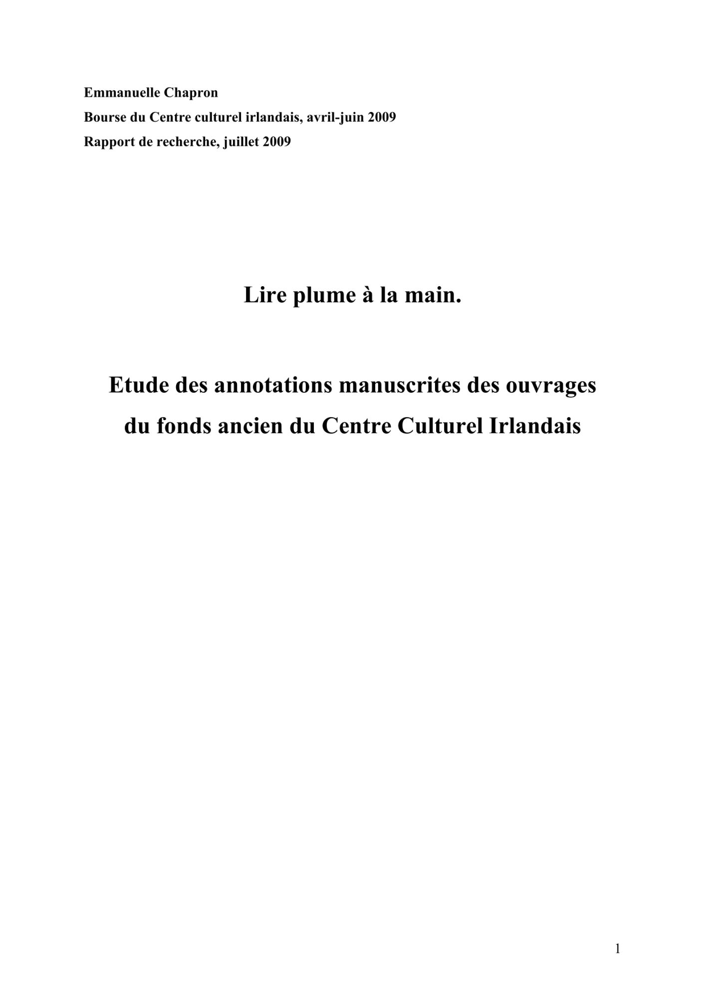 Since the 1970s, marginalia written by famous readers such as Voltaire, Jonathan Swift, Samuel T. Coleridge, Charles Darwin and Stendhal have been the subject of critical editions; these notes documented their sources of inspiration and their working methodologies. Nowadays, the focus has turned to annotations from less well-known readers. They provide a way to understand the material and intellectual processes within the book through the transmission and appropriation of texts. Used as a bookmark, a memorisation tool, a device for grasping a difficult passage, a means to rebel against dangerous ideas, or a way to answer an esteemed author, handwritten notes reveal some of the strategies the reader used while studying the book.