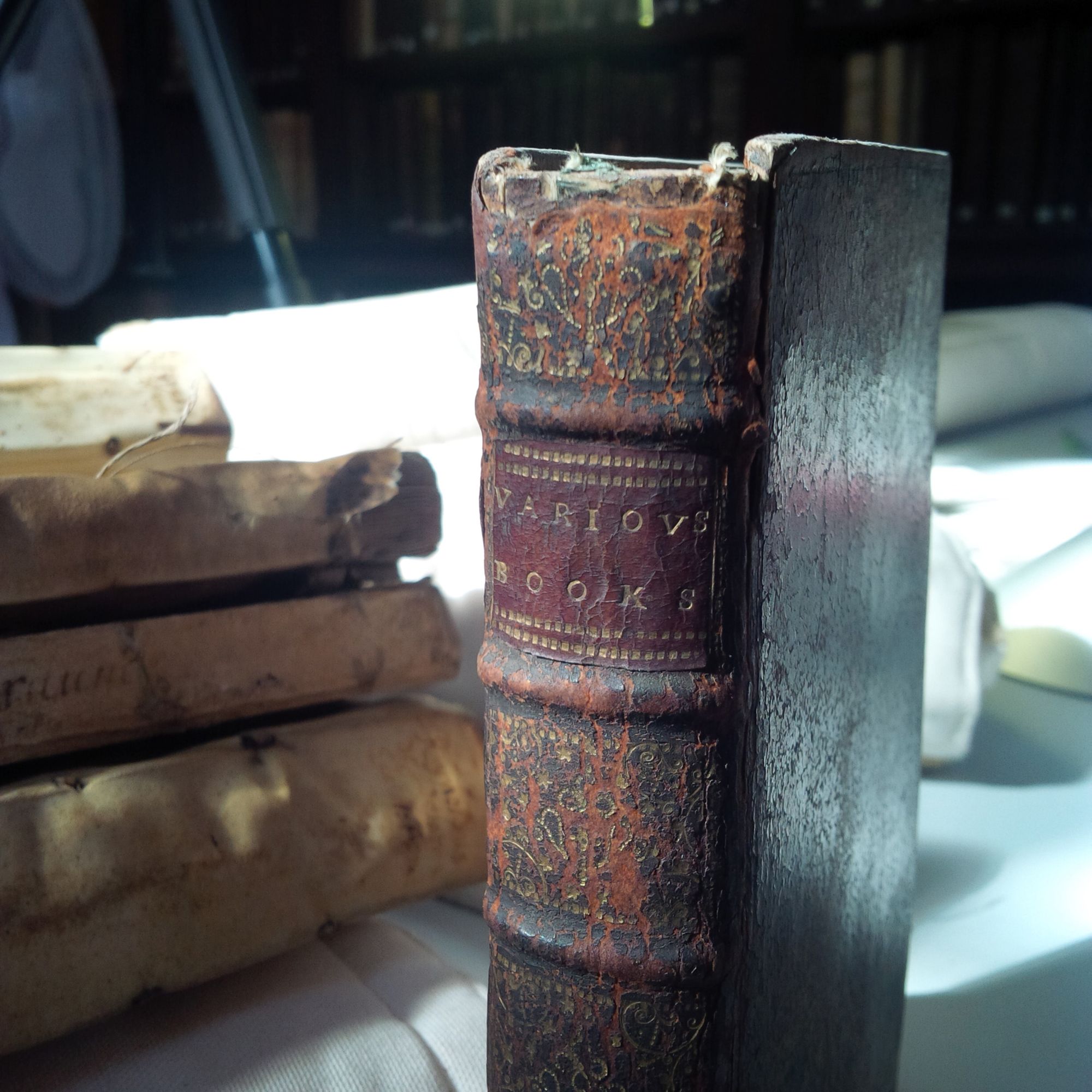 Normally when these volumes were created they received a new purpose-made binding, even if sometimes this made it difficult when seeking a generic title to describe the whole volume, as is demonstrated by this volume bearing the title “Various Books” on its spine.