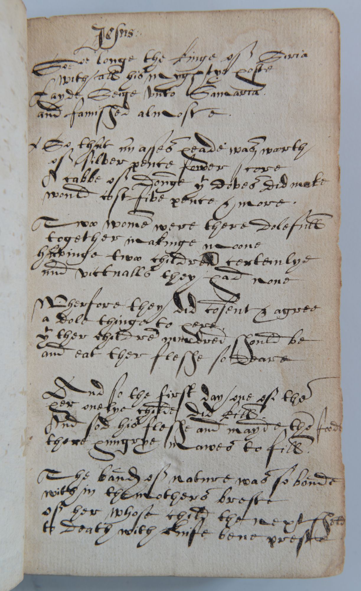 Sheets of texts that were thought to be either outdated or without interest were used to strengthen bindings. They represent a fascinating source of information. Here, we have an English book of popular piety. This type of edition was common during the Renaissance and many thousands of copies were sold. But their very popularity makes these books rare today: they were used until they fell apart. This fragment is the only known surviving copy.