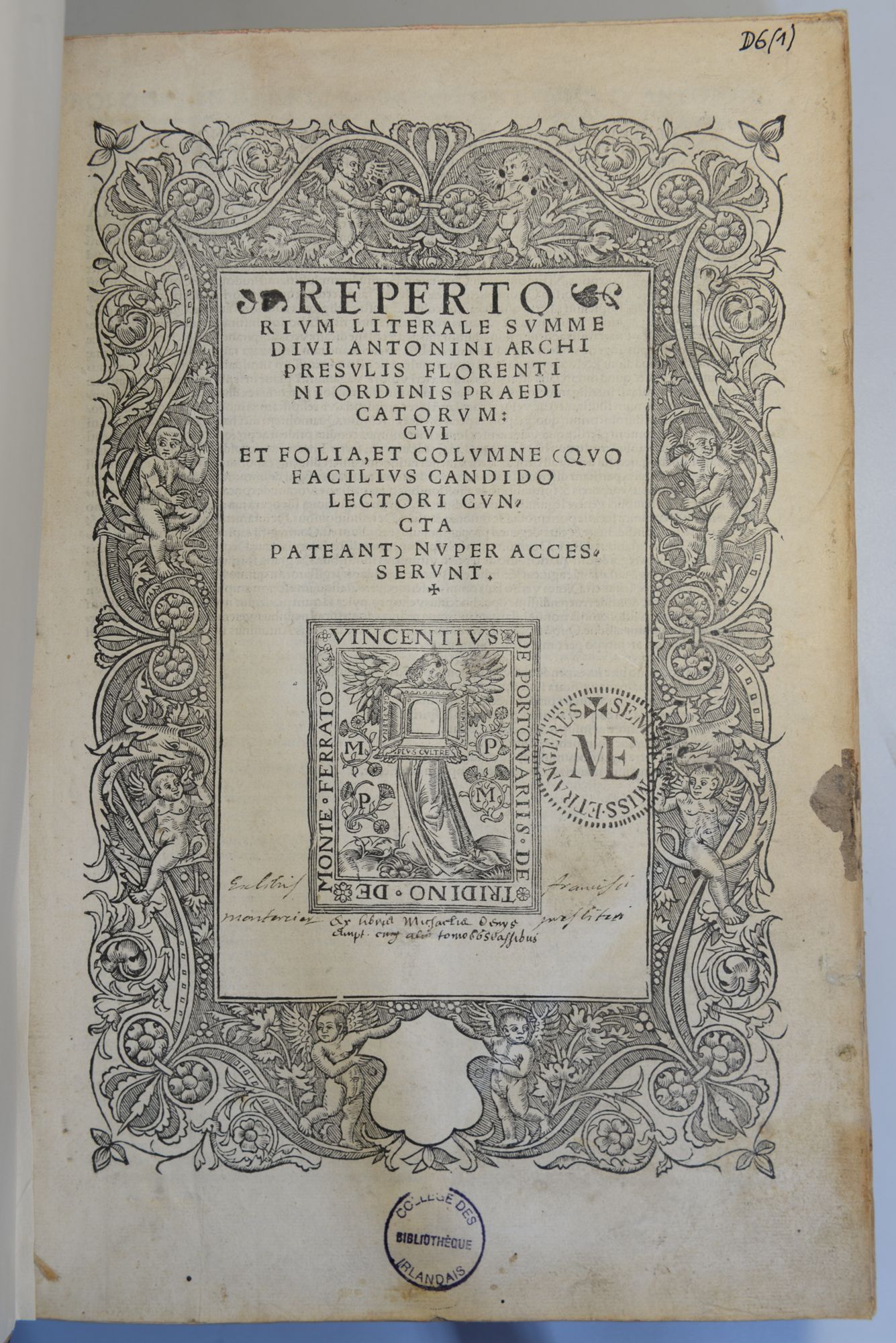 Antonin of Florence, Summe, Lyon: Jacques Mareschal for Vincent de Portonariis, 1529, USTC 146085 – D 6.