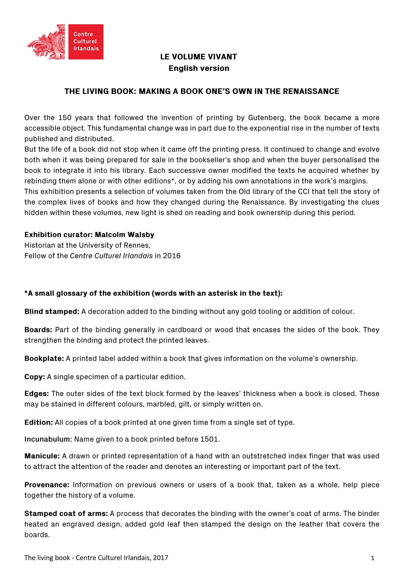 It is extraordinary volumes such as this one that can still today be consulted and admired at the Centre Culturel Irlandais.